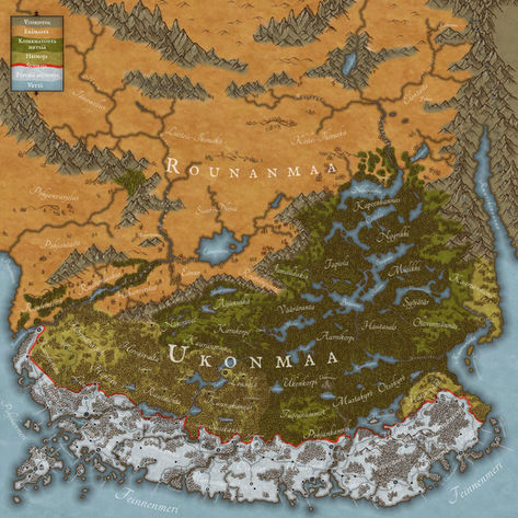 Tietoa maailmasta -osio koostuu otteista fantasiamaailman sisäisestä tietokirjasta, Albinuksen Mythologia Feinnestä. Tämä osio on linkitetty Ukonmaan kirjoihin. Tarinoiden kartat, tietolaatikot ja olentokortit löytyvät täältä.